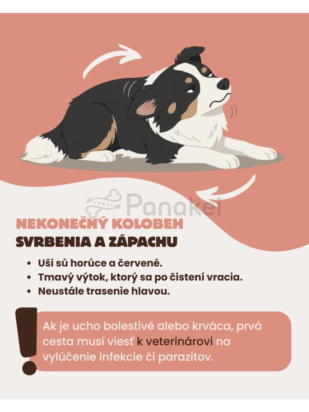 👉 Uši psa je vhodné kontrolovať pravidelne. Ak sú výrazne začervenané, teplé na dotyk, alebo majú nepríjemný zápach, môže ísť o infekciu - v takom prípade je vhodné obrátiť sa na veterinára.